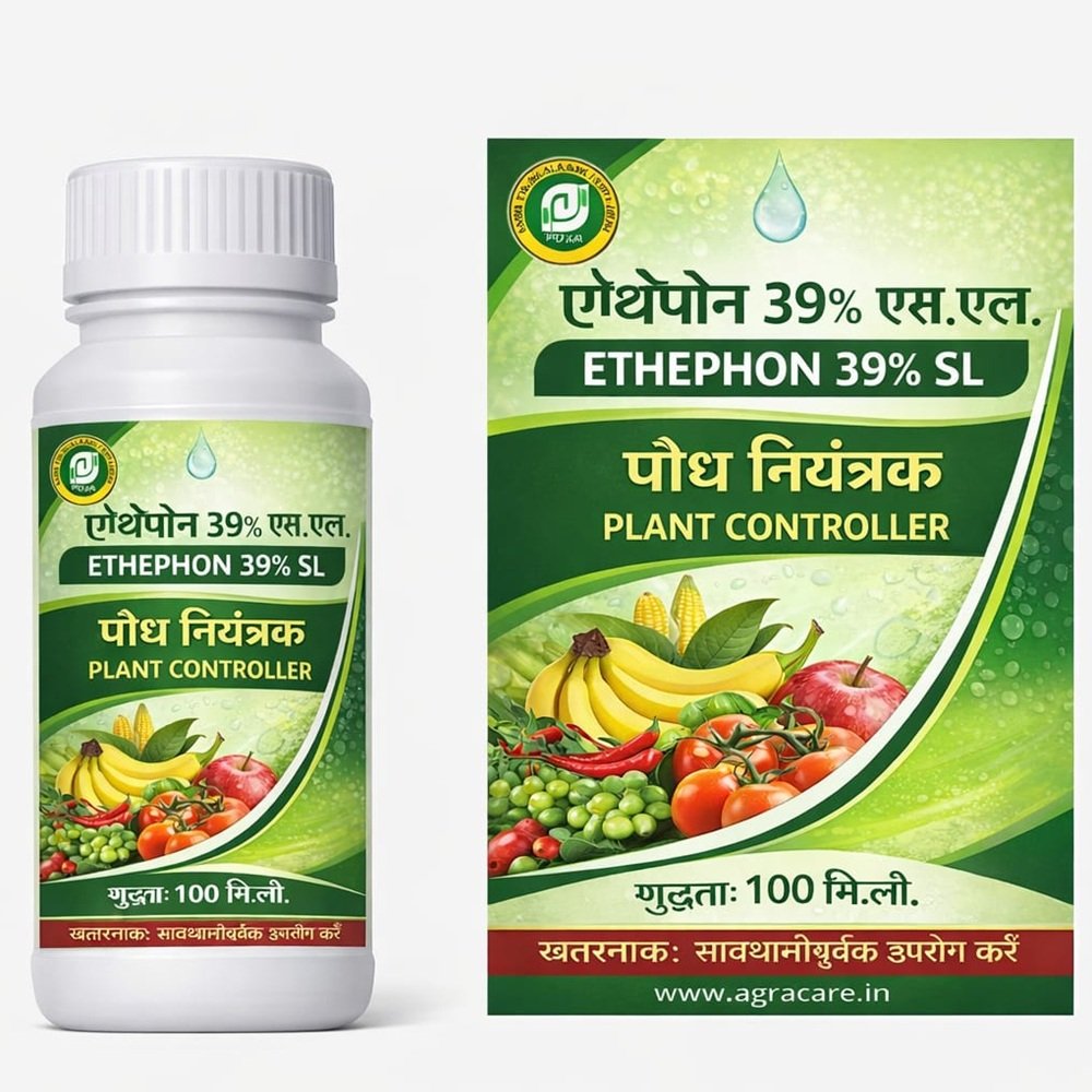 ETHEPHON 39% SL is a versatile Plant Growth Regulator (PGR), also known as a Plant Controller (पौध नियंत्रक). It is widely used in agriculture to regulate plant growth and, most importantly, to accelerate the uniform ripening of fruits and vegetables. Manufactured by Puja Agro, this product helps farmers achieve a faster and more marketable harvest.