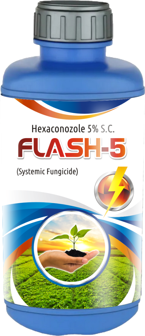 FLASH-5 is a highly effective systemic fungicide containing Hexaconazole 5% SC (Suspension Concentrate). It is designed to provide preventive and curative control of a wide range of fungal diseases by inhibiting fungal growth and development, ensuring healthy crop growth and improved yield.
